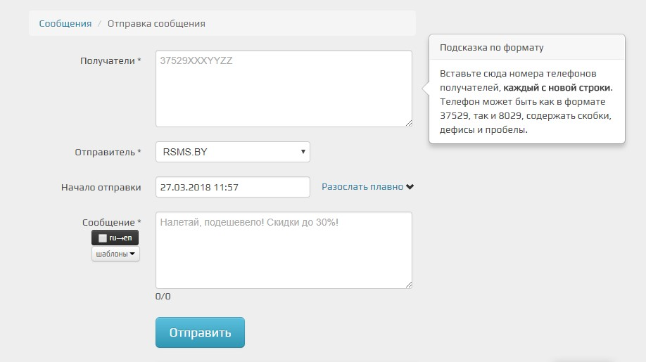 Тестовое СМС, например, на ваш номер телефона, поможет избежать неловких ошибок и проверить работоспособность ссылки. Затем можно запускать массовую рассылку.